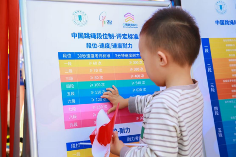 嘉年华还设有个人30秒跳绳挑战赛,成功者可现场申请中国跳绳段位认证。从5岁萌娃到50多岁长者,不同年龄层参与者踊跃上场,在跳跃中感受运动快乐。一旁的跳绳科普展区也吸引众多市民驻足学习,全民健身热情洋溢全场。