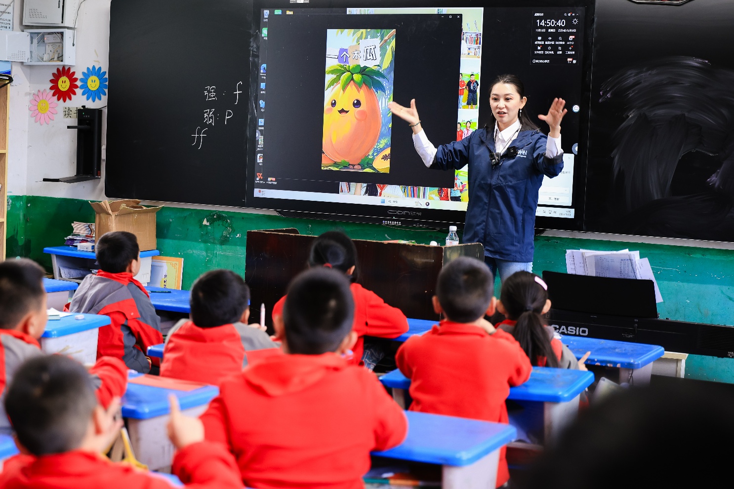 除了STEM科学课,此次探访也依托各位参与志愿者的特长,给孩子们带来了不少拓展课程。不仅有知识科普类IP大咖“混知”团队带来了一场强互动的人类起源历史课,让历史课本上的原始人、智人都动起来,在孩子们参与他们的“对话”中了解了那段悠远的历史。音乐老师志愿者教唱《音乐之声》并讲解音乐在生活中的运用,更有上海广播电台主持人上的一堂“大师级”朗读课,引起了孩子们的巨大兴趣和热情参与。多元的课程设计,生动示范了对“科学+人文”综合素质的引导发展,并与乡村基础教育形成有效互补。