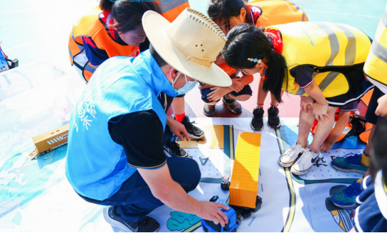 活动现场,孩子们玩的不亦乐乎。只见在“认识车辆盲区”游戏区域内,一名学生坐进车里,通过亲身体验了解哪些位置是车辆视觉盲区;而另一区域,孩子们则通过遥控模拟体验驾驶,体会车辆在转弯过程中前、后轮的轨迹区别,从而清晰地理解“大货车内轮差”……