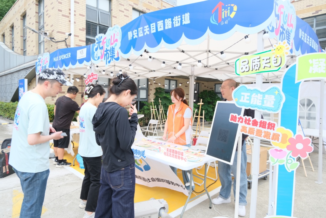 9月29日,天目西路街道各社会组织服务亮相“光full市集”。街道社区志愿者服务中心向公众宣传志愿服务理念,吸引了众多热心市民前来咨询和报名,壮大社区公益力量。