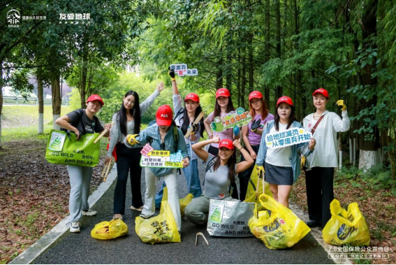 2025年友爱地球首站成都站活动中,友邦志愿者们通过捡拾行动,助力绿色金融。友邦人寿供图